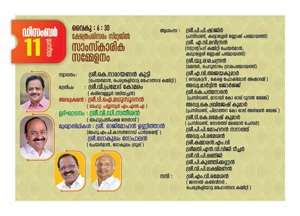 വൈകു: 6:00 മണിക്ക്: പുലിയൂർ കണ്ണൻ ദൈവം വെള്ളാട്ടം